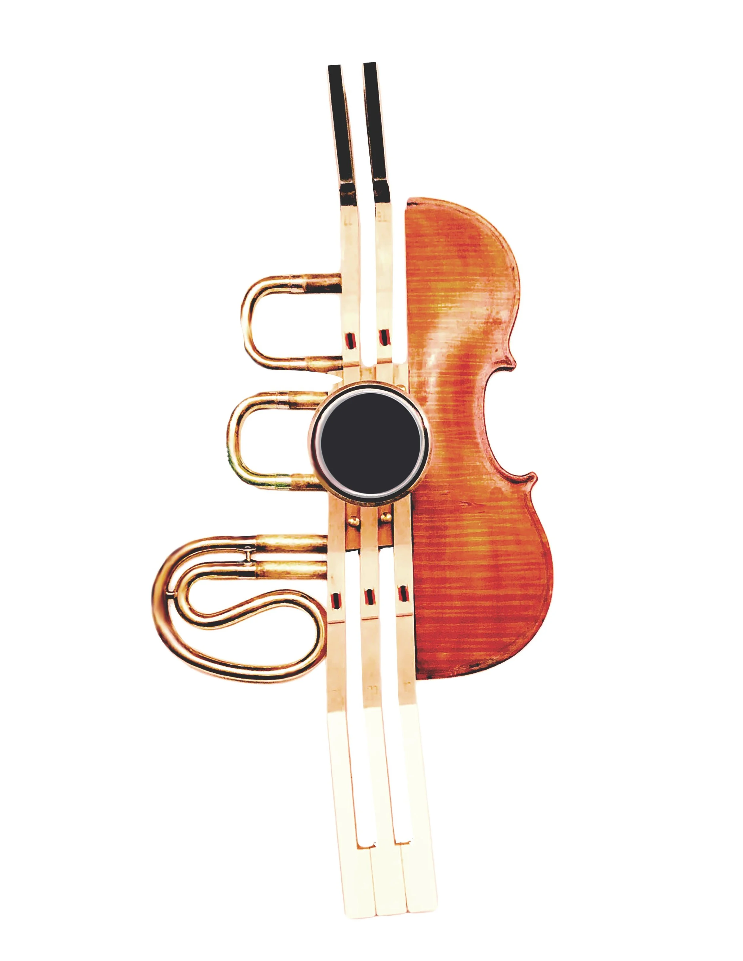 Artwork Credit: Lu Hanna/Poly Phonic, Composition 9, 2024. Mixed media assemblage. 14” x 24” x 6.”